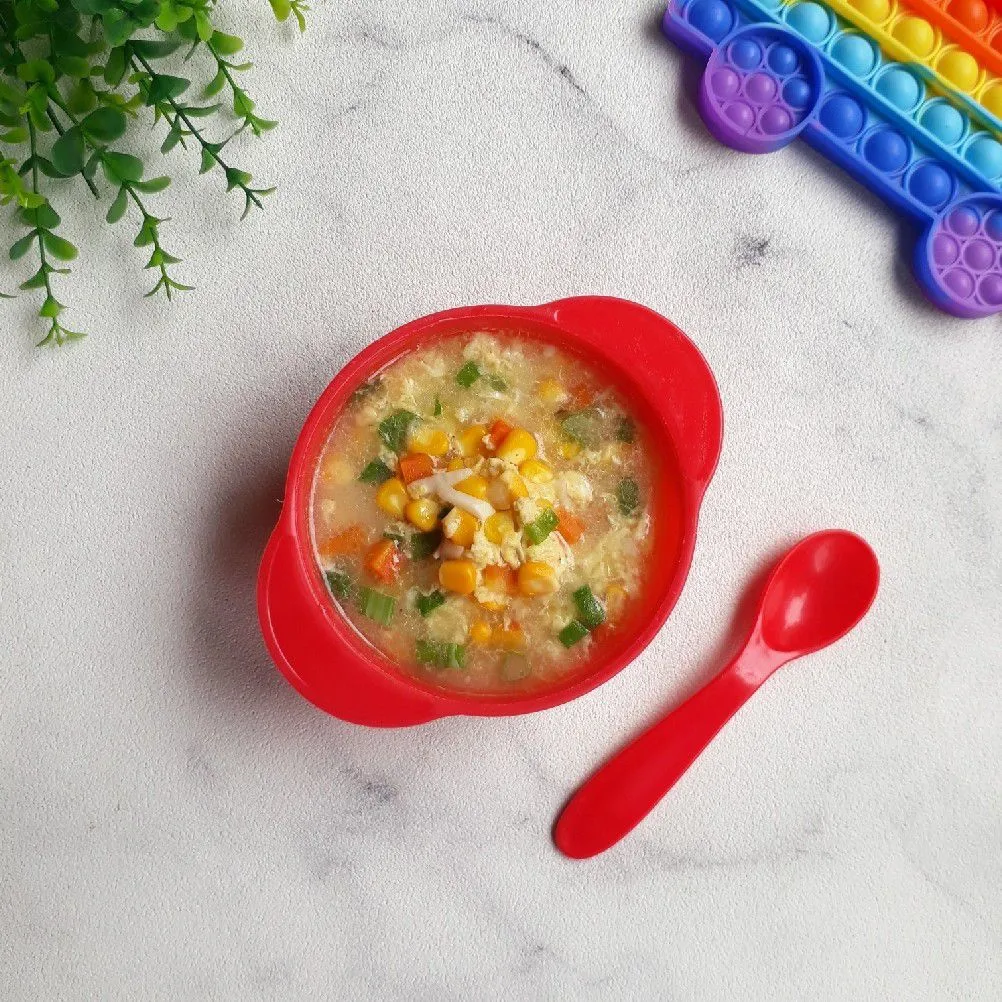 Sup jagung manis memiliki tekstur yang lembut dan mudah dikunyah, cocok untuk bayi yang sedang dalam fase pengenalan makanan padat. Jagung sendiri mengandung karbohidrat kompleks, serat, serta vitamin A dan C yang baik untuk pertumbuhan anak. Selain itu, campuran wortel dan labu siam memberikan warna alami sekaligus nutrisi tambahan seperti beta-karoten.