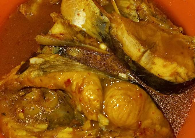 Ikan patin yang telah dimasak dalam kuah asam pedas