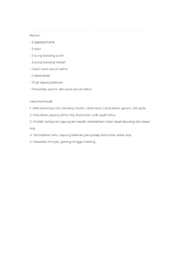 (Read also: Resep Bakwan Jagung Khas Indonesia yang Mudah Dibuat)