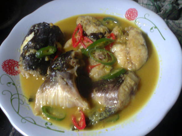 Selanjutnya, tumis bumbu halus bersama serai dan daun jeruk hingga harum. Tambahkan air dan biarkan mendidih. Masukkan ikan ke dalam panci dan tambahkan garam, gula, dan penyedap rasa. Aduk rata hingga bumbu meresap. Terakhir, masukkan bawang prei dan masak hingga matang. Koreksi rasa dan sajikan.